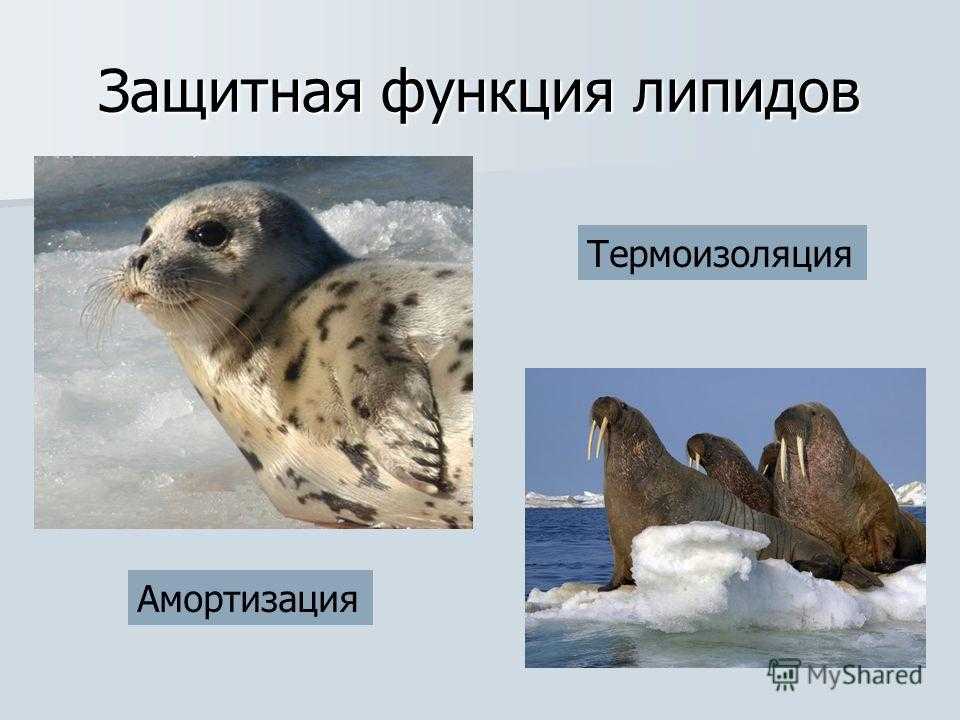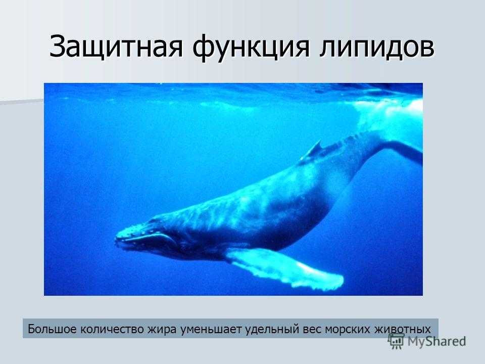 Защитная функция липидов Большое количество жира уменьшает удельный вес морских животных