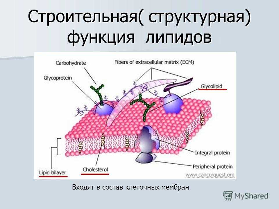 Строительная( структурная) функция липидов Входят в состав клеточных мембран